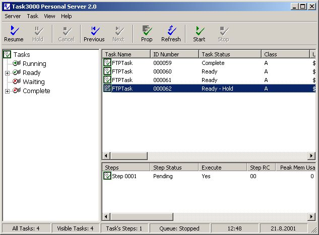 Task3000 Workstation with several parameters. Task3000 server administrator